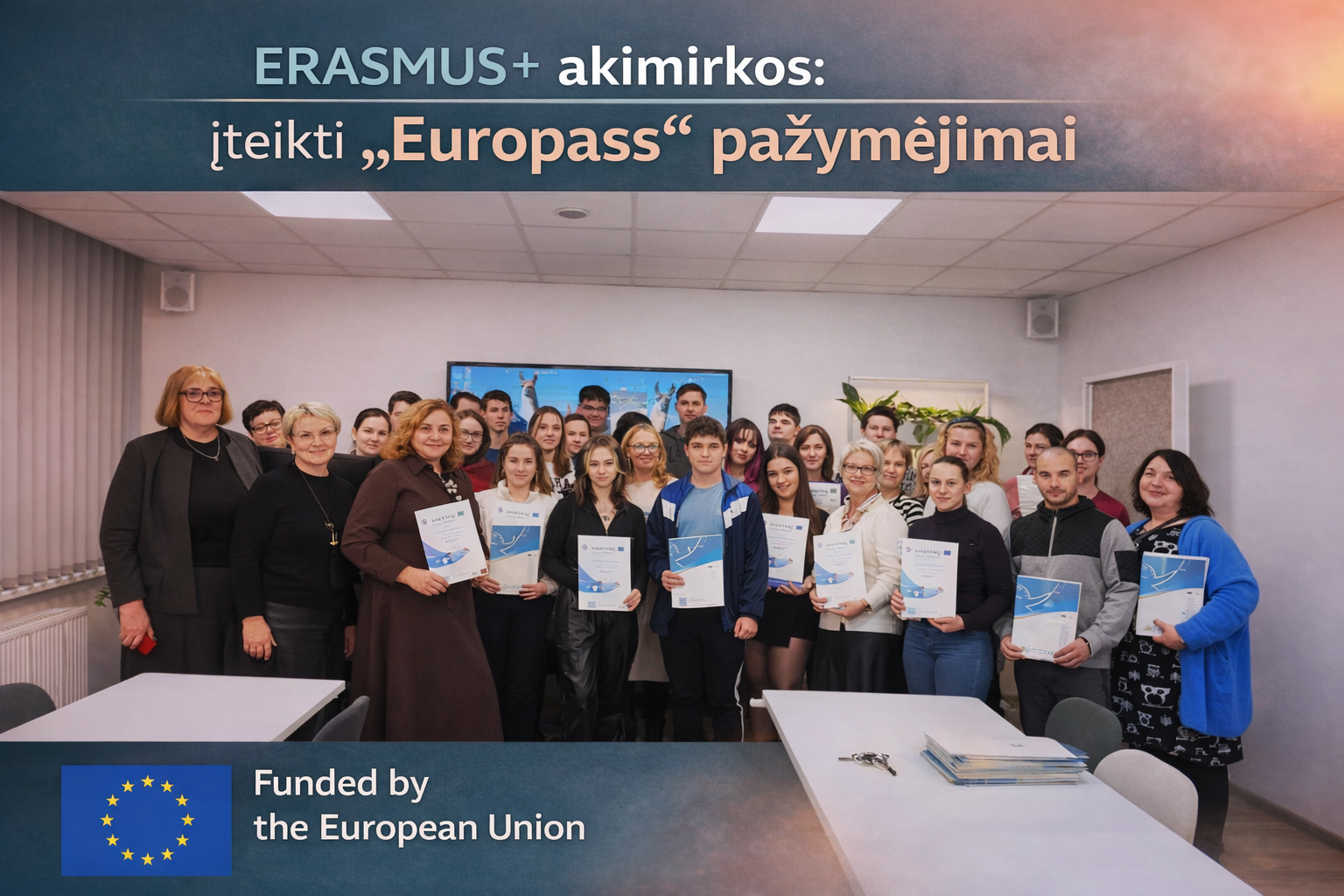 2025 m. gruodžio 16 d. Utenos regioninio profesinio mokymo centro konferencijų salėje įvyko iškilmingas ERASMUS+ projekto (Nr. 2025-1-LT01-KA121-VET-00311936) dalyvių pagerbimas ir „Europass“ pažymėjimų įteikimo šventė.