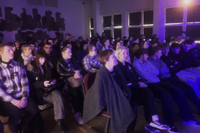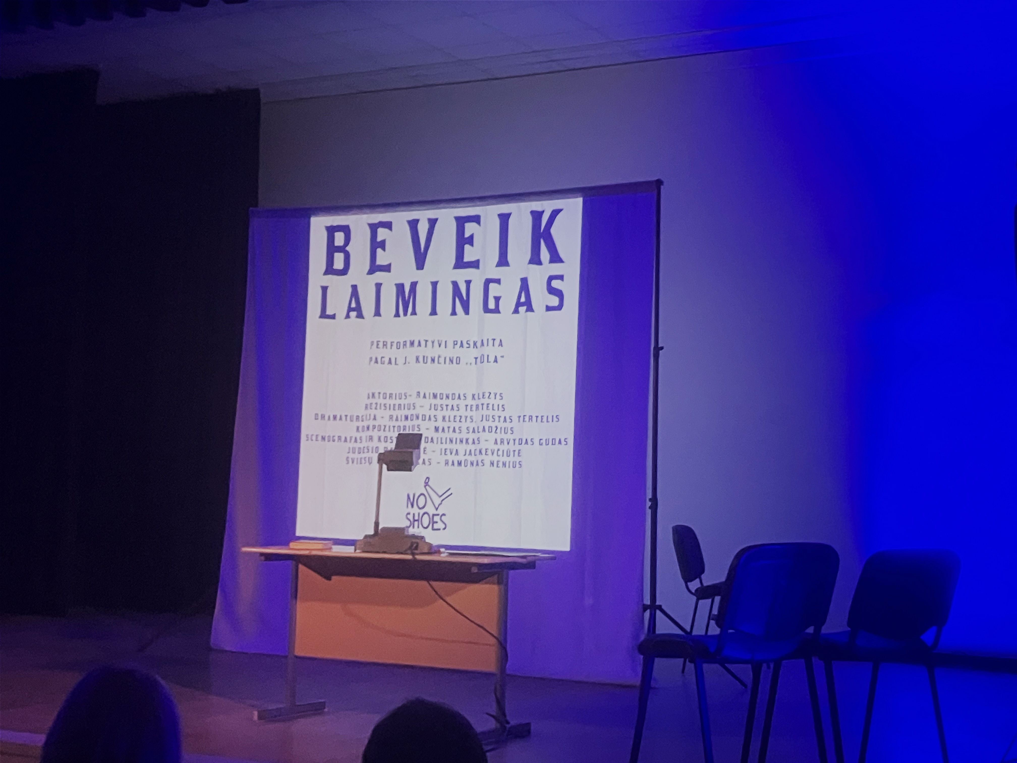 Kas yra tikroji laimė? Ar ji pasiekiama? Kodėl kartais labiausiai skauda tai, kas turėtų teikti džiaugsmą? Šie žmogui artimi klausimai 2026 m. kovo 3 d. Utenos RPM centre rodytame monospektaklyje „Beveik laimingas“ virto ne tik kūrinio leitmotyvu, bet ir žiūrovų vidiniu dialogu. Aktorius Raimondas Klezys, bendradarbiaudamas su režisieriumi Justu Terteliu, sukūrė įtaigų J. Kunčino romano „Tūla“ herojaus portretą, perteikdamas jo išgyvenimus, sovietmečio realijas ir meilės trapumą. Tai vienas aktyviausiai su jaunimu dirbančių šiuolaikinio teatro kūrėjų, gebantis užmegzti tikrą ryšį su paauglių auditorija. Spektaklis nustebino savo atvirumu – tapo savotišku „atviruku“ rašytojui J. Kunčinui, jungiančiu biografijos fragmentus, literatūrines nuorodas ir jausminę istorijos gelmę. Nuo pirmųjų spektaklio akimirkų mokiniai buvo įtraukti į veiksmą: aktorius kvietė juos improvizuoti, mąstyti ir reaguoti, todėl teatras virto bendru kūrybiniu procesu. Po spektaklio vykusi diskusija pratęsė emocinį poveikį. Mokiniai dalijosi įspūdžiais, klausė aktoriaus apie kūrybinį kelią ir patirtis, nulėmusias šį darbą. R. Klezys atvirai kalbėjo apie save, kūrybines intencijas ir tikėjimą, kad teatras gali ne tik kviesti pramogauti, bet dažnai padeda giliau pažvelgi į save, savo jausmus ir išgyvenimus.