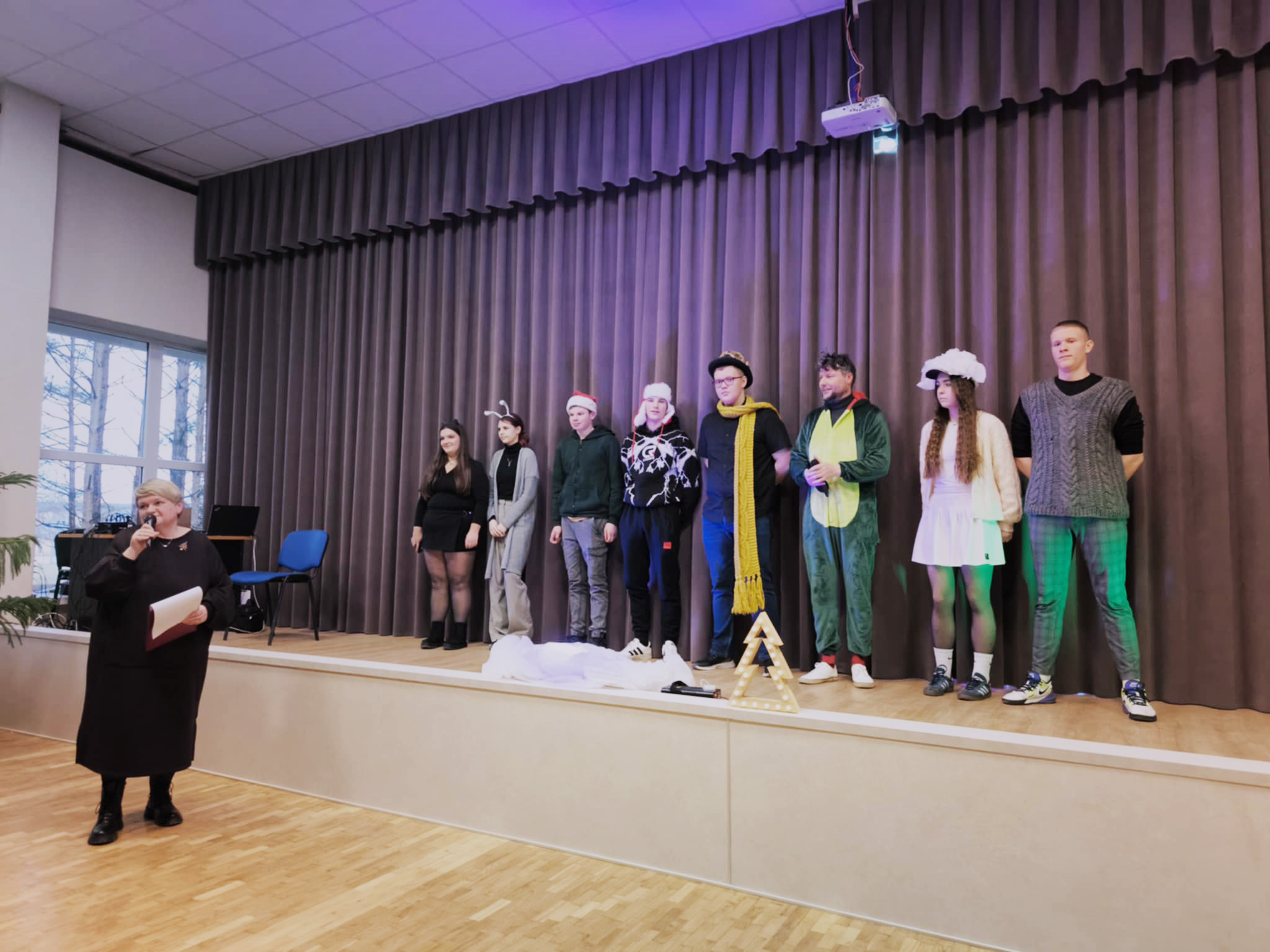 2025 m. gruodžio 16 d., prieš pat didžiąsias metų šventes, Utenos RPM centro aktų salė virto magiška erdve, kurioje gimė mokinių ir mokytojų kūrybinės grupės KALĖDINĖ PASAKA „Kai ramybė sugrįžta į laukiančią širdį...“ Tai buvo ne tik spektaklis – scenoje skleidėsi jaukus pasakojimas, kuriame veikėjai, vedami vilties, leidosi į šviesos paieškas. Ši simbolinė kelionė atspindėjo tikrąsias švenčių vertybes – gerumą, dalijimąsi ir stebuklo (kuris įvyko!) laukimą... Ypatingą jaukumą kūrė ne tik muzika ir dainos, bet ir žodžiai. Renginio vedėja Daiva Šereikienė kvietė atnaujinti senus, taisyti apleistus ir tiesti naujus kelius, vedančius į bendrystę ir supratimą. Mokyklos direktorė Loreta Baltuškienė linkėjo kurti ir augti, būti pakantiems ir dėmesingiems, nes šventės prasideda ten, kur susitinka širdys ir skamba gerumas...