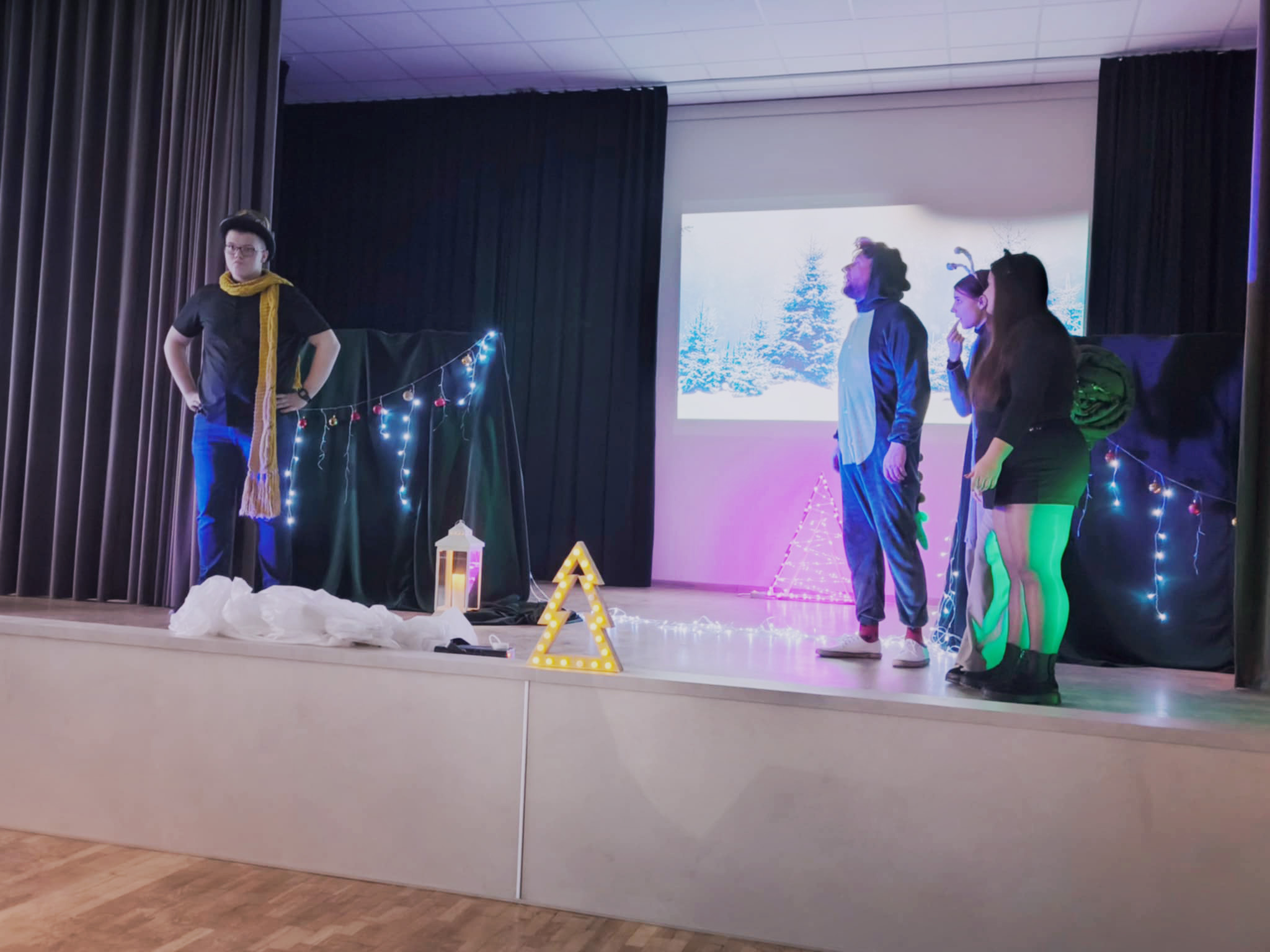 Už tai, kad visi kaip viena didelė šeima susibūrė išgyventi bendrystės, kad patyrė švenčių laukimo nuotaiką, mokyklos administracija dėkoja renginių organizavimo būrelio vadovei Daivai, muzikos mokytojui Valdui, tautodailininkei Audrai, spektaklį kūrusiems mokiniams ir visiems, patikėjusiems, kad nepaprastas akimirkas galima sukurti kartu!