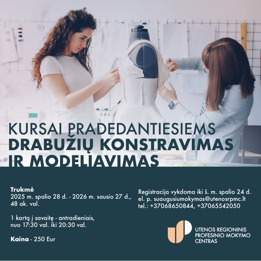 Mokymus ves specialistė, turinti ilgametę lektorės bei drabužių konstruktorės ir technologės patirtį, šiuo metu gilinanti kompetencijas doktorantūros studijose – Inga Breitmozerė.