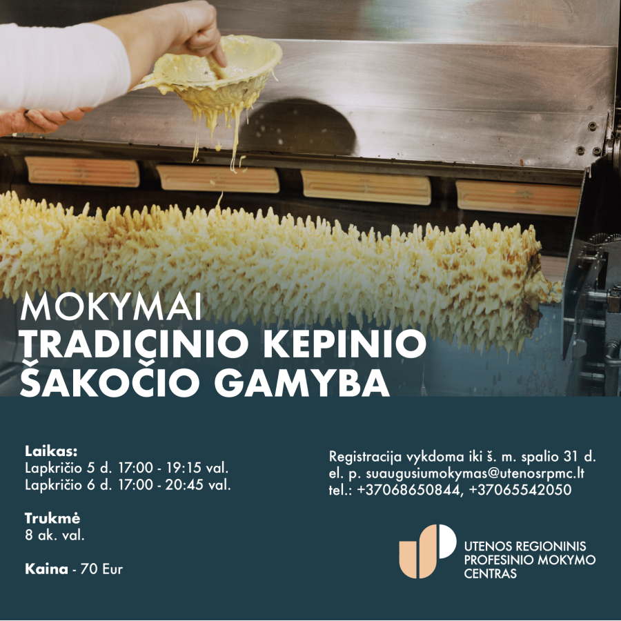 Mokymus ves vyr. profesijos mokytoja Asta Jurkštienė, dirbanti su duonos, pyrago, konditerijos gaminiais virš 20 metų, parašiusi ne vieną knygą duonos, pyrago gaminių kepimo tematika.