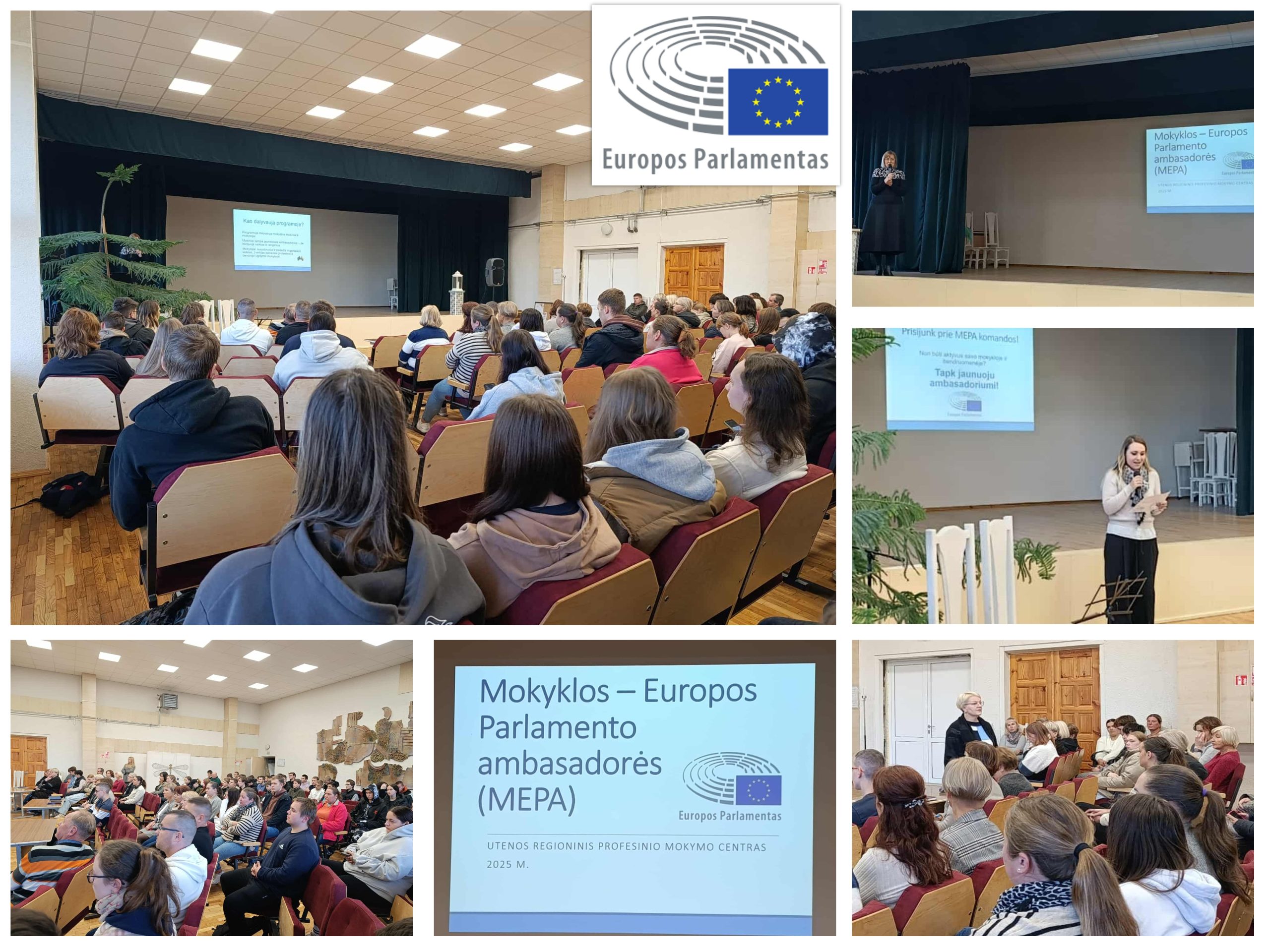 Spalio 9 d. Utenos regioniniame profesinio mokymo centre vyko programos „Mokyklos – Europos Parlamento ambasadorės“ (MEPA) pristatymo renginys. Į jį susirinko mokytojai ir mokiniai, norintys daugiau sužinoti apie šią prasmingą ir Europoje plačiai vykdomą pilietinio ugdymo iniciatyvą.