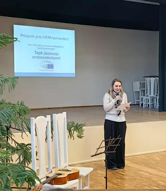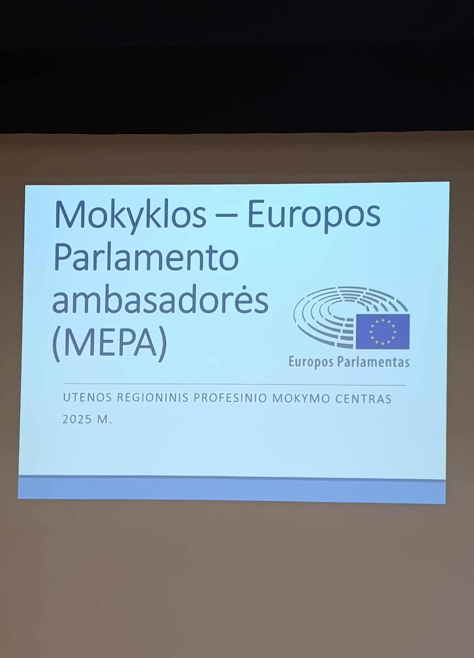 Šis pristatymas tapo įkvepiančia MEPA veiklų pradžia mūsų mokykloje – kelione, kuri skatins domėtis, veikti ir augti kartu su Europa.