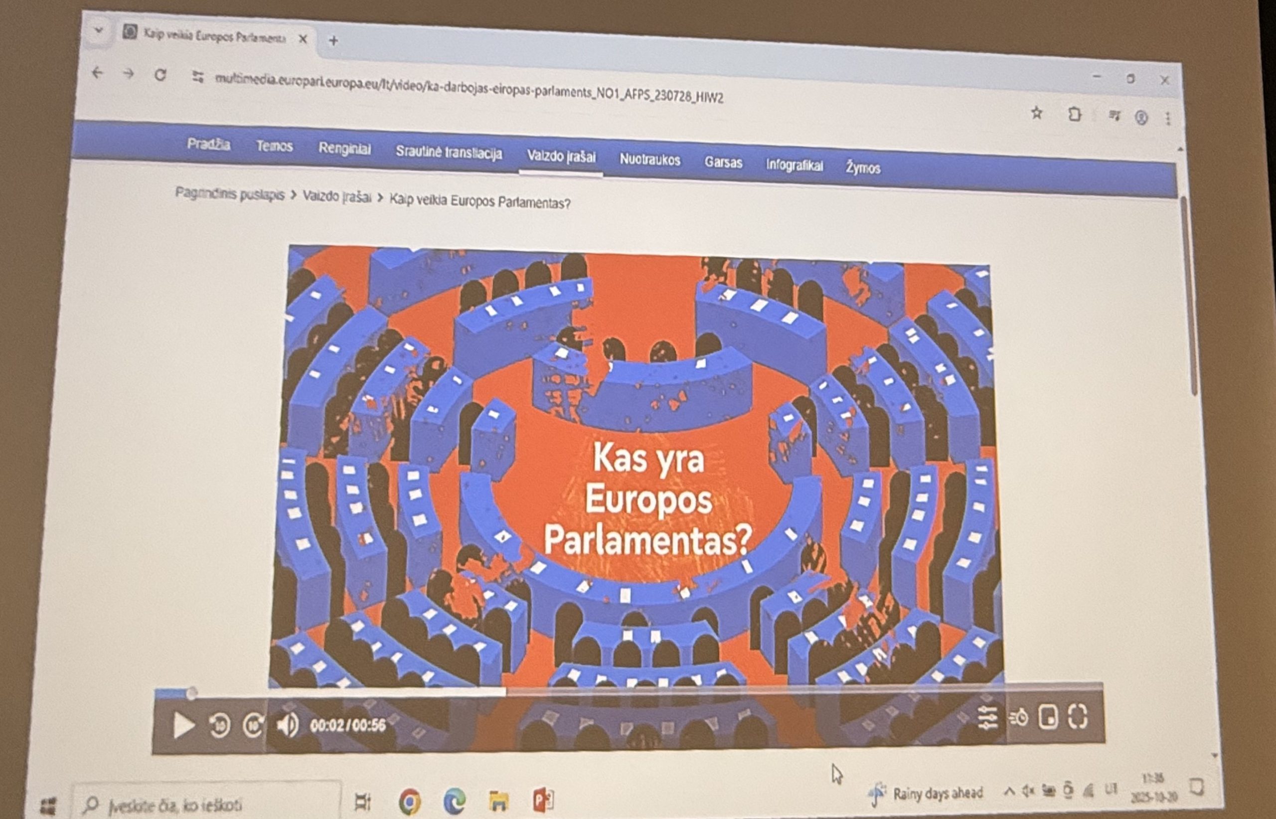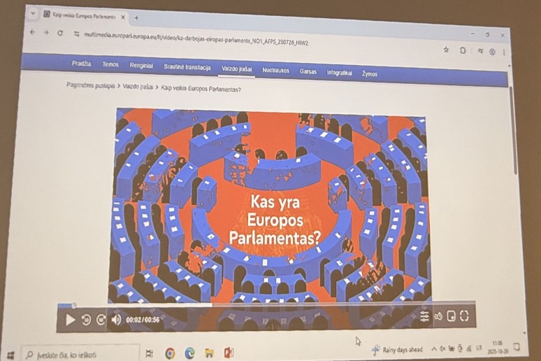 Spalio 20 d. vyko netradicinės geografijos pamokos 11 ir 12 klasių mokiniams. Šių pamokų metu mokiniai dalyvavo viktorinoje apie Europos Sąjungą ir Europos Parlamento veiklą. Užduotys buvo įdomios, interaktyvios, skatino bendradarbiavimą ir kritinį mąstymą.