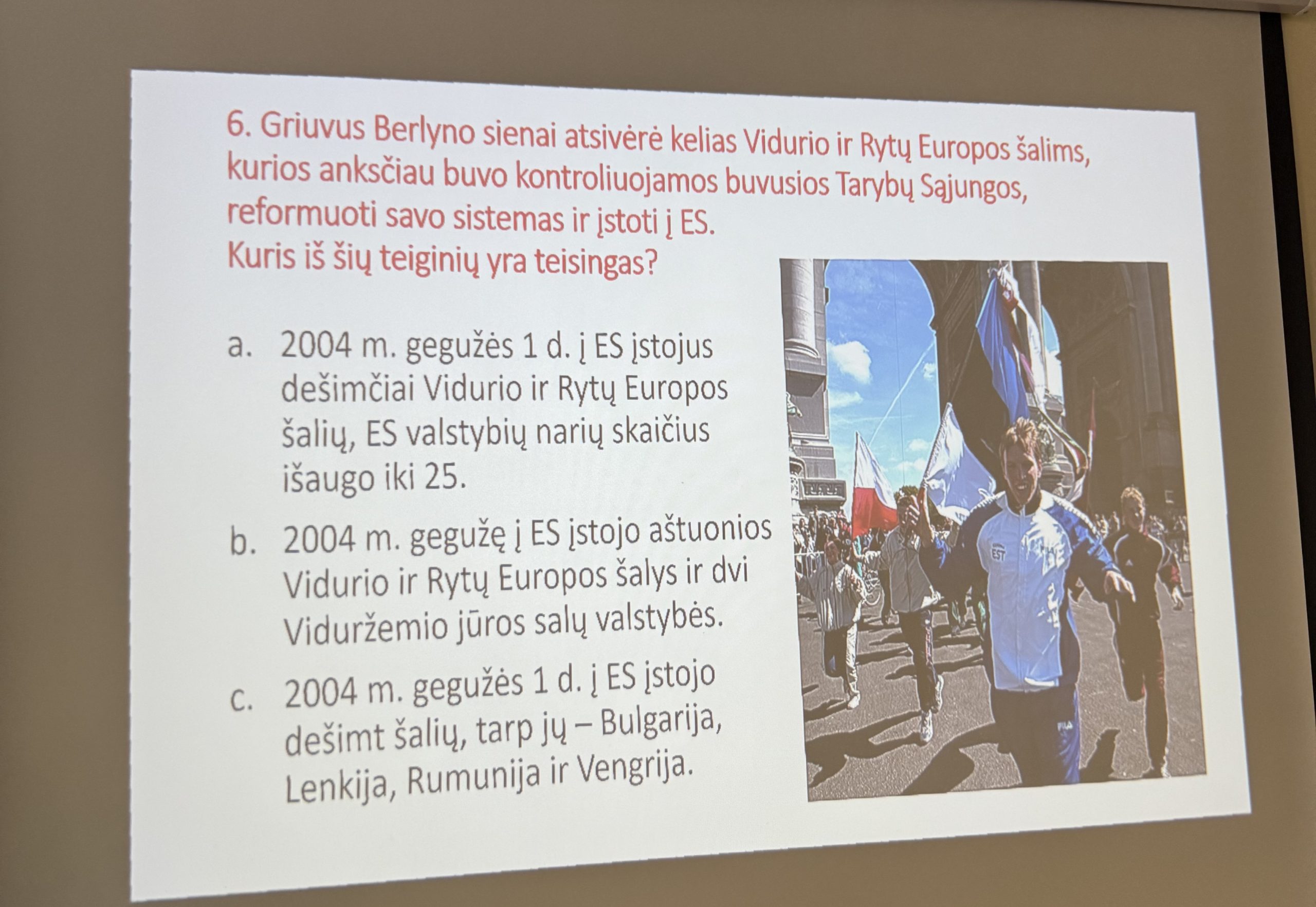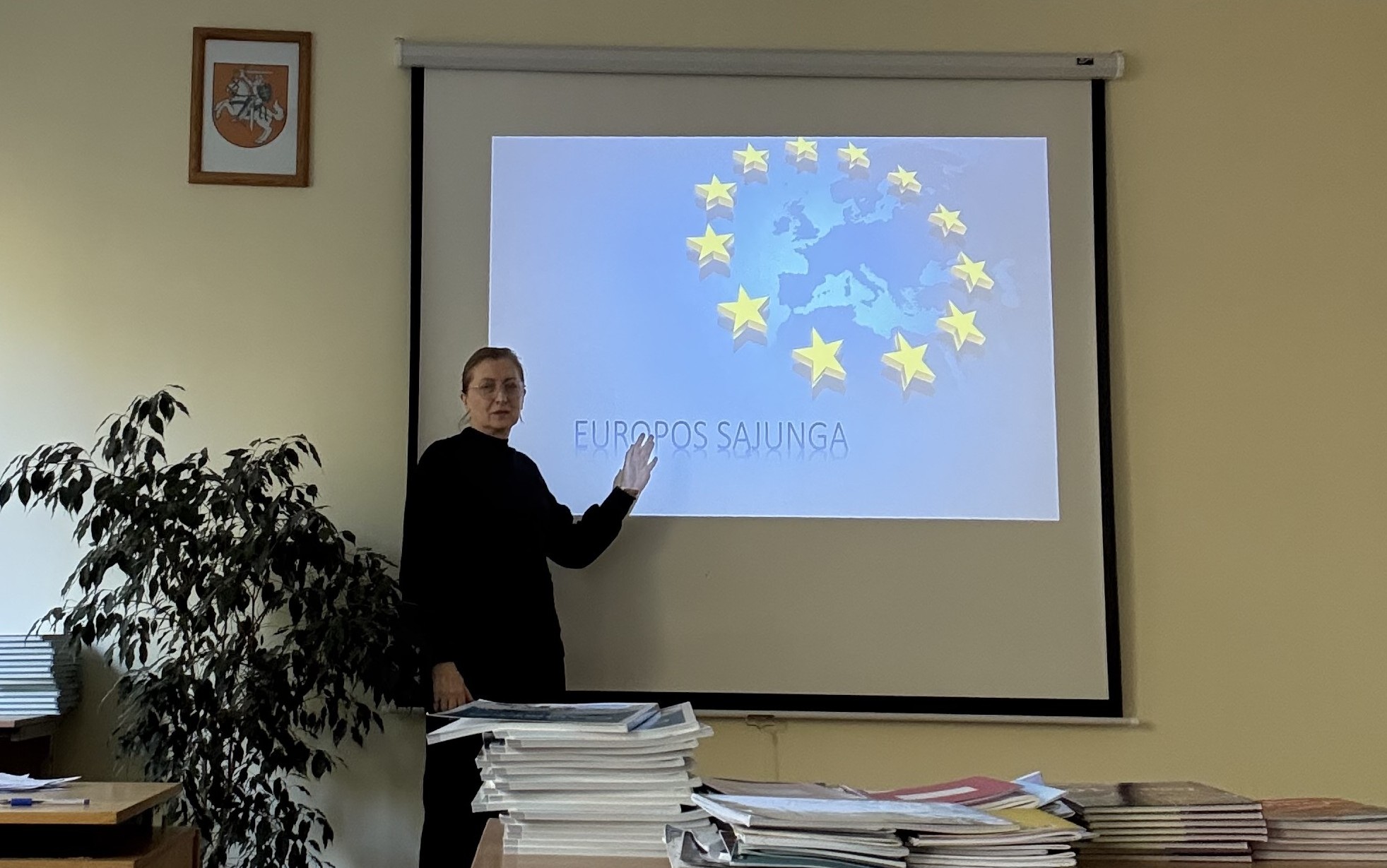 Pamokas vedė geografijos vyr. mokytoja Neringa Strelčiūnienė. Ši veikla – viena iš MEPA (Mokyklos – Europos Parlamento ambasadorės) projekto veiklų, kurios tikslas – skatinti jaunimą domėtis Europos Sąjungos veikla, pilietiškumu ir aktyviu dalyvavimu visuomeniniame gyvenime.