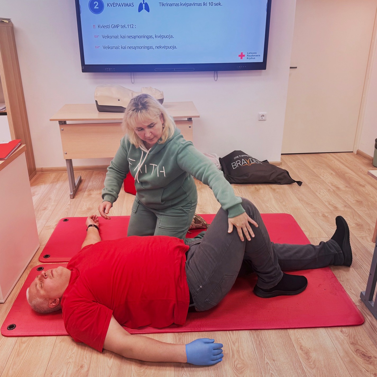 2026 m. kovo 20 d. Utenos RPM centro slaugytojo padėjėjo bei individualios priežiūros darbuotojo specialybės mokiniai dalyvavo Lietuvos Raudonojo Kryžiaus organizuotuose pirmosios pagalbos ir civilinės saugos mokymuose. Tai svarbi mokymosi patirtis, padedanti jaunuoliams įgyti gyvybiškai reikalingų žinių ir pasirengti tinkamai reaguoti įvairiose situacijose. Mokymus vedę Raudonojo Kryžiaus atstovai ne tik pristatė teorinius pirmosios pagalbos pagrindus, bet daug dėmesio skyrė praktinei daliai. Savanoriai mokė, kaip teisingai įvertinti nukentėjusiojo būklę, kokią informaciją būtina perduoti pagalbos tarnyboms ir kokios klaidos dažniausiai daromos, atsitikus nelaimei. Be pirmosios pagalbos temų, mokymuose aptarta ir civilinė sauga. Kalbėta apie tai, kaip elgtis kilus gaisrui, kokių priemonių reikia namų „krizės krepšyje“, kokie veiksmai atliekami paskelbus evakuaciją ir kt. Slaugytojo padėjėjo bei individualios priežiūros specialybės mokiniai nuoširdžiai dėkoja Raudonojo Kryžiaus savanoriams. Profesijos mokytojų I. Lapinskienės ir S. Rutkauskienės teigimu, tokios veiklos yra neatsiejama mokymo proceso dalis, ugdanti mokinių atsakomybę, sąmoningumą ir pasirengimą realiems gyvenimo iššūkiams.
