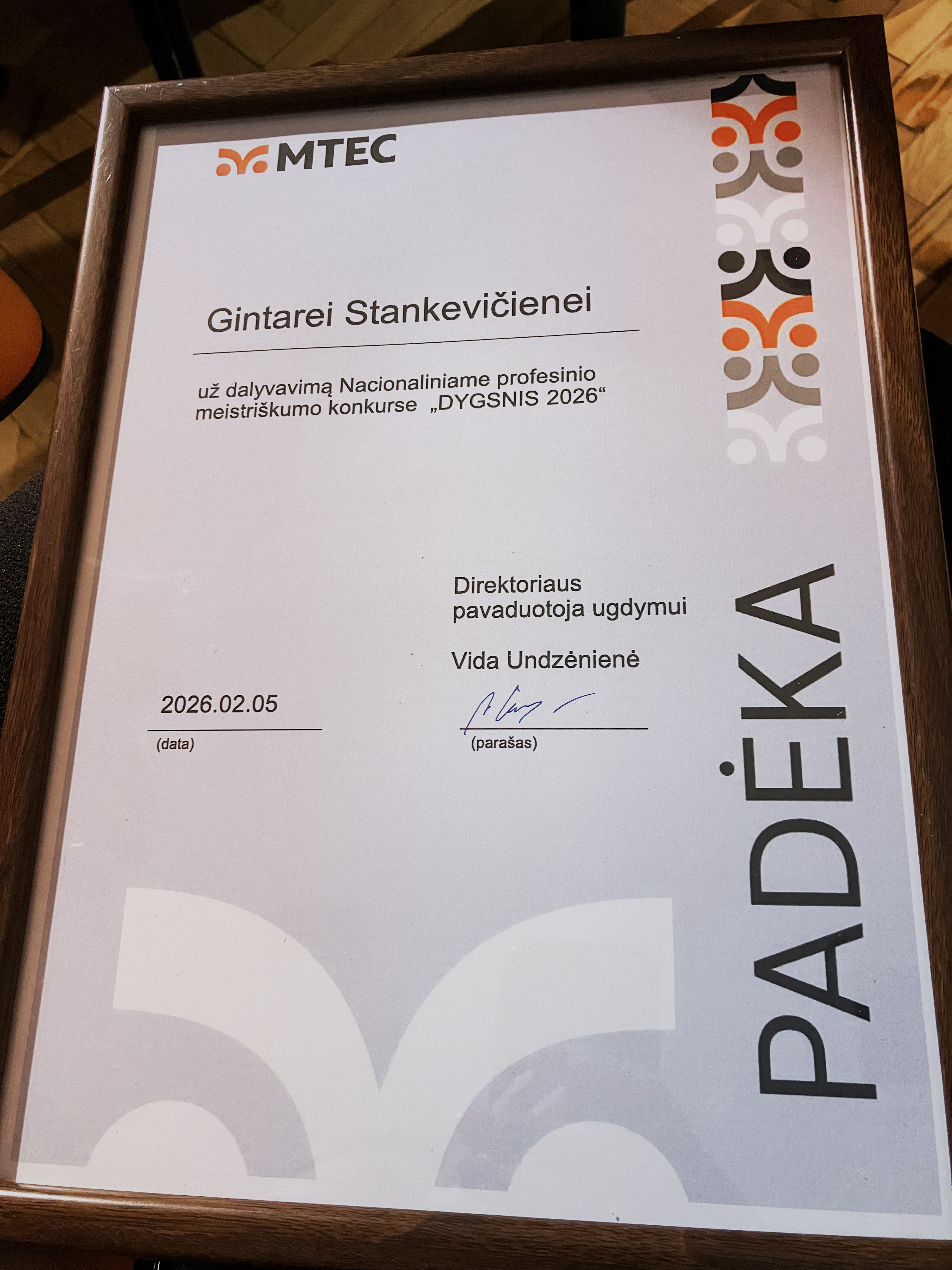 Nacionalinis profesinio meistriškumo konkursas „Dygsnis 2026“, vykęs 2026 m. vasario 5 d. Marijampolėje, subūrė net aštuonias komandas iš įvairių Lietuvos profesinių mokyklų. Tarp jų – Sv-25-T gr. mokinė Gintarė Stankevičienė iš Utenos RPM centro. Būsimosios siuvėjos turėjo per nustatytą laiką modeliui pasiūti numatytą gaminį. Komisija vertino darbo tikslumą, technologinių operacijų atlikimą, gaminio kokybę, estetiką ir bendrą atlikimo kultūrą. Konkursui ruošusios profesijos mokytojos Gražinos Vygėlienės teigimu, kova dėl prizinių vietų buvo itin įtempta, nes kelios dalyvės varžėsi nežymiai atsilikdamos viena nuo kitos.