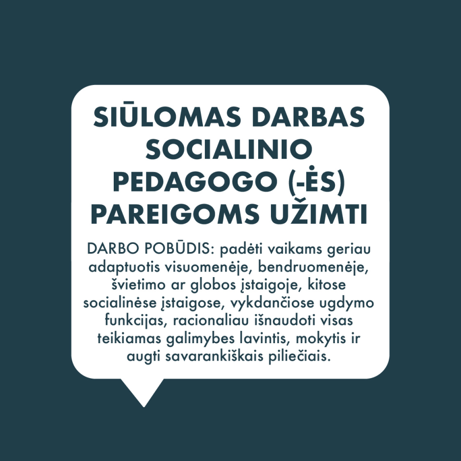 DARBO SKELBIMAS SOCIALINIO PEDAGOGO (-ĖS) PAREIGOMS UŽIMTI