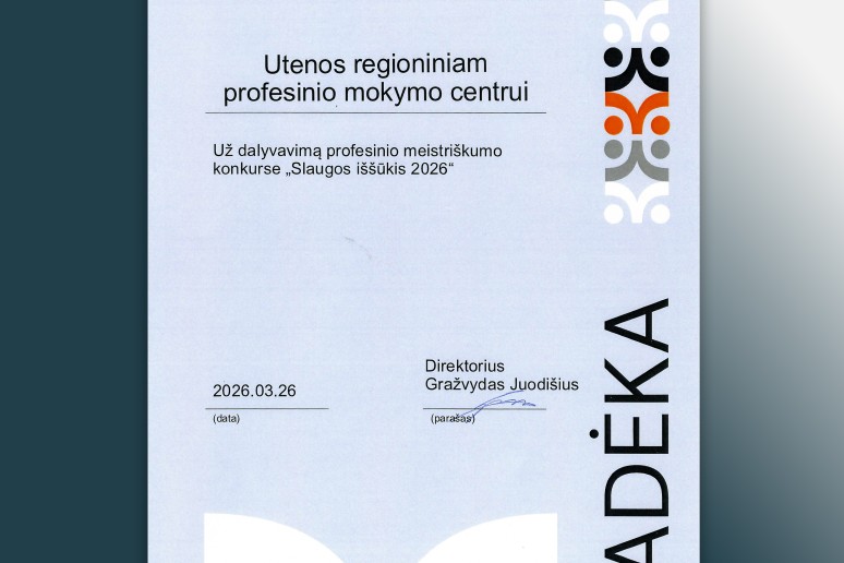 2026 m. kovo 26 d. Marijampolės profesinio rengimo centre vyko nacionalinis slaugytojo padėjėjo profesinio meistriškumo konkursas „Slaugos iššūkis 2026“.Tarp 18 dalyvių iš visos Lietuvos savo jėgas išbandė ir Utenos RPM centro mokiniai. Kol būsimieji slaugytojo padėjėjai rungėsi, juos lydintys mokytojai lankėsi viename seniausių Marijampolės krašto ir Prezidento Kazio Griniaus muziejuje, Šv. arkangelo Mykolo bazilikoje, dalyvavo kūrybinėse dirbtuvėse, kokteilių degustacijoje, pabuvojo mokyklos mokomajame SPA centre.
