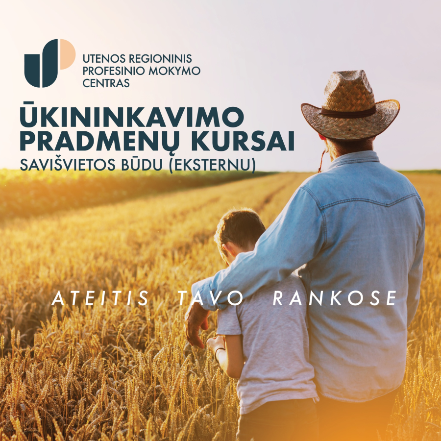 KVIEČIAME MOKYTIS Utenos RPM centras organizuoja mokymo kursus pagal Ūkininkavimo pradmenų mokymo programą (valst. kodas 296081073) savišvietos būdu (eksternu). Mokymo programa skirta asmenims, neturintiems žemės ūkio išsilavinimo, bet siekiantiems įregistruoti ūkį ūkininkų registre.