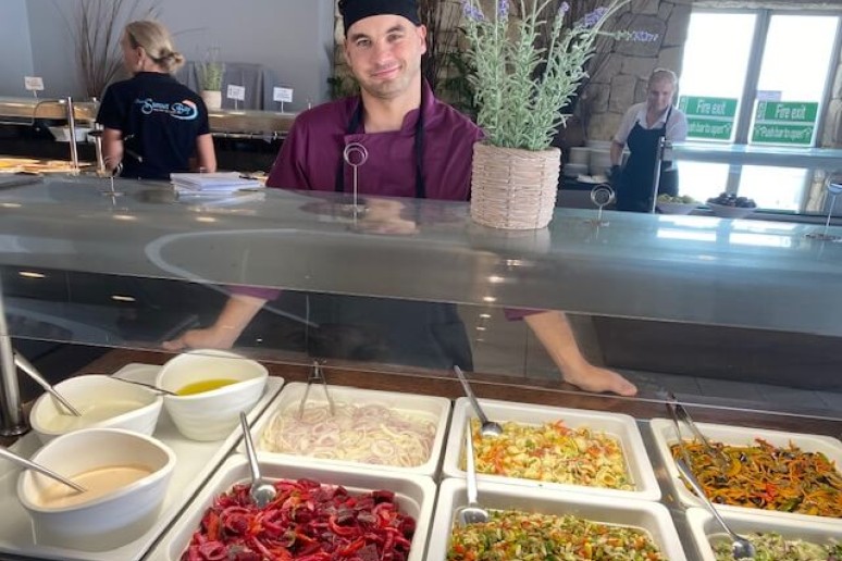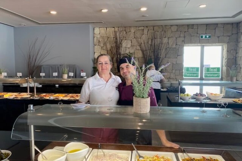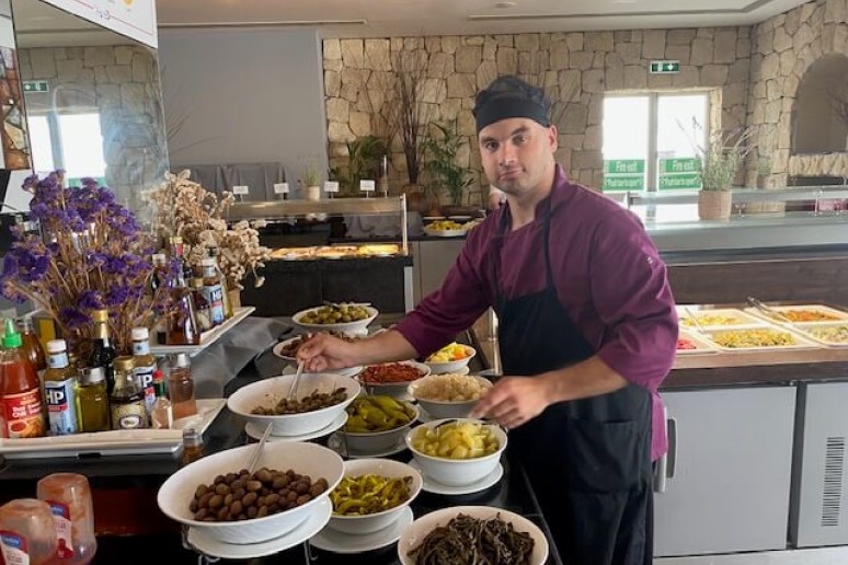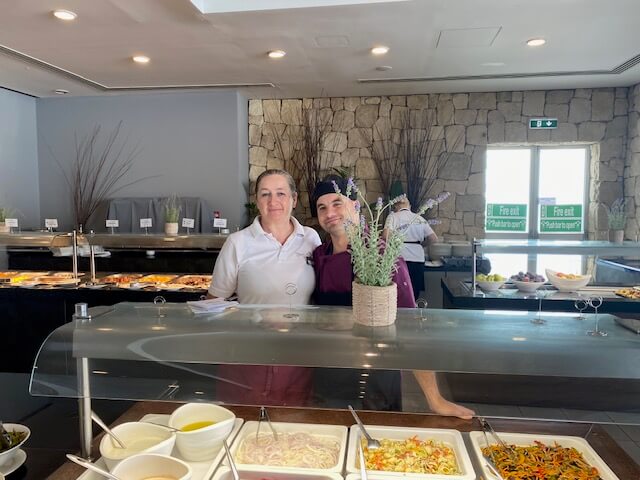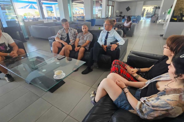 Erik Garbul ir Dangiras Jaronskis (Vr-23 gr.) praktikuojasi „Theo Sunset Bay Village Hotel“, Coral Bay Road, Kissonerga, Kipras.