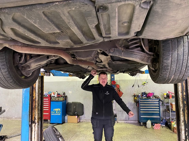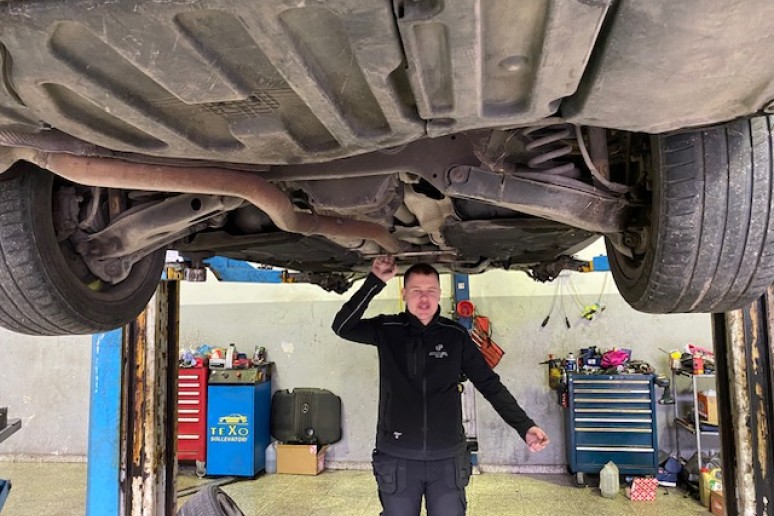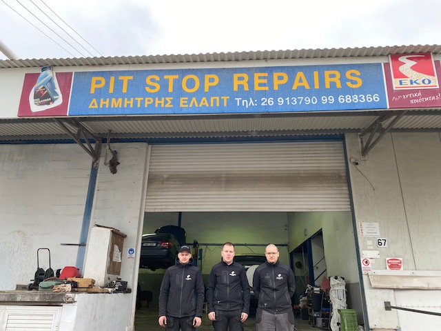 Tos pačios specialybės mokiniai Renatas Mačionis, Vėjas Kuzma (AM-25 gr.) ir Rokas Palskis (AM-24 gr.) profesinius įgūdžius tobulina autoservise Yeroskipou mieste.