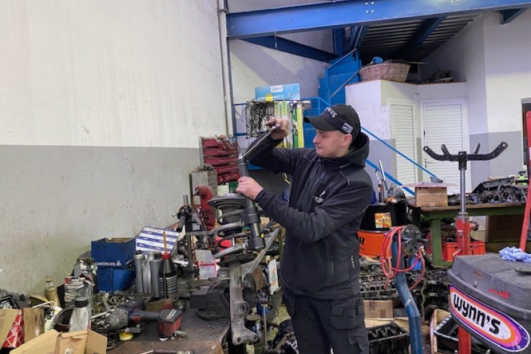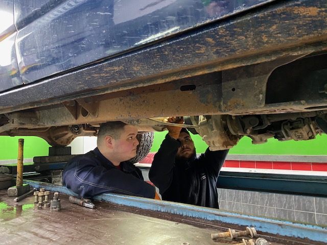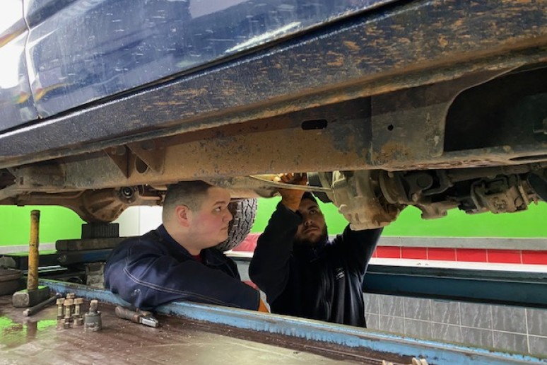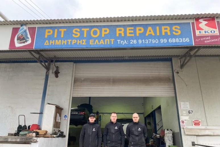 Transporto priemonių remontininko specialybės AM-25 grupės mokiniai Mindaugas Marcinkevičius ir Astijus Navikas praktiką atlieka įmonėje „M.N. Theodosiou & Sons LTD“ (Paphos).