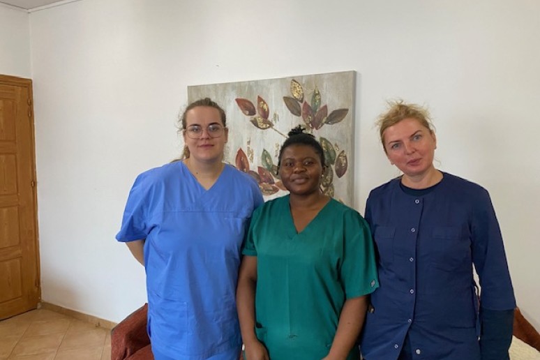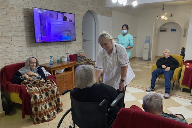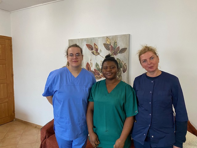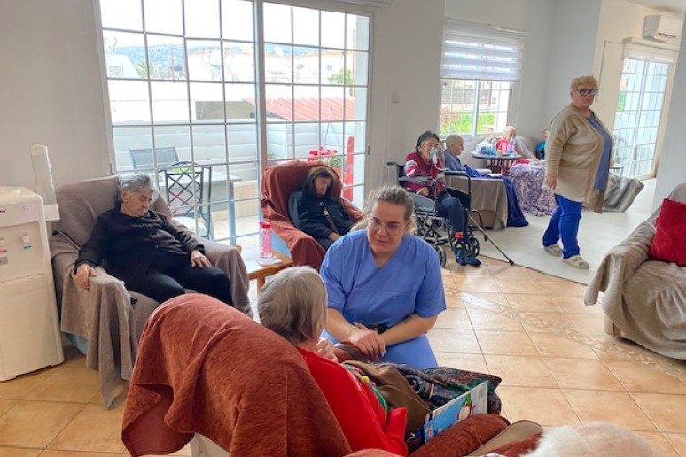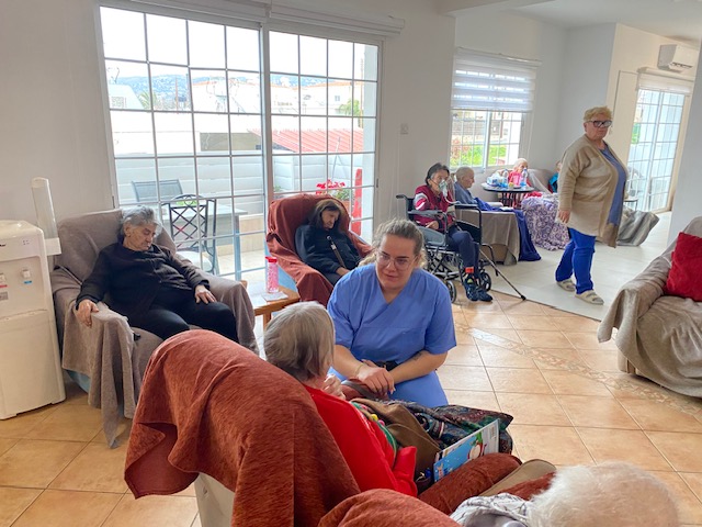 Slaugytojo padėjėjo specialybės SP-25 grupės mokinė Olena Parkhomenko, bei Individualios priežiūros darbuotojo specialybės SOC-25 grupės mokinės Jolanta Bulkienė ir SOC-25-T Viltė Gaidelytė stažuojasi slaugos namuose „Virgin Mary Care Home“ (Chloraka, Paphos).